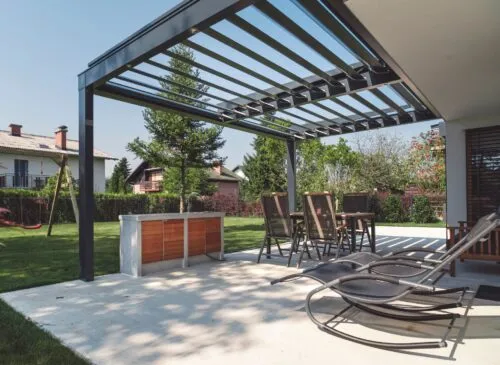 - Estetyka – Nowoczesne pergole mogą być dostosowane kolorystycznie i stylistycznie do reszty zabudowy, co pozwala na stworzenie spójnej aranżacji.