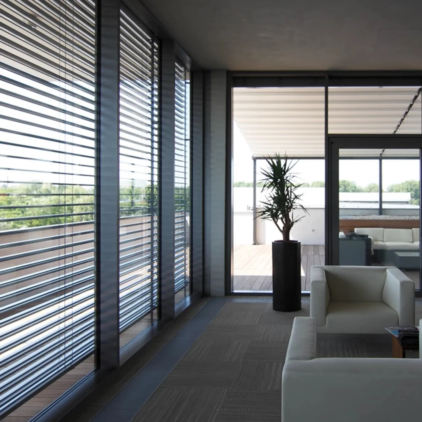 These are by far the most effective solution for protection against heat loss. The aluminum or PVC shutter filled with polyurethane foam creates a solid barrier that stops the cold before it reaches the glass. An air layer between the shutter and window acts as insulation, reducing energy loss by up to 10–20 percent. Furthermore, external blinds protect against noise and improve security, making them ideal for standalone houses and apartments with large glazed areas.