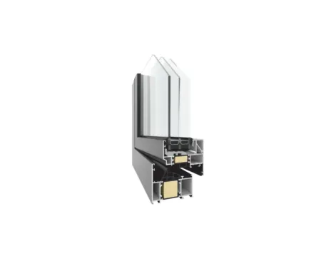 The thermal insulators used in the system (made of glass fibre-reinforced polyamide) and the space between them is additionally filled with polyurethane foam. The system makes it possible to create large-size structures due to the use of reinforced profiles on the outside as well as on the inside.