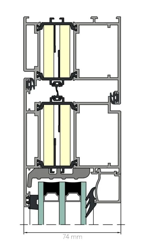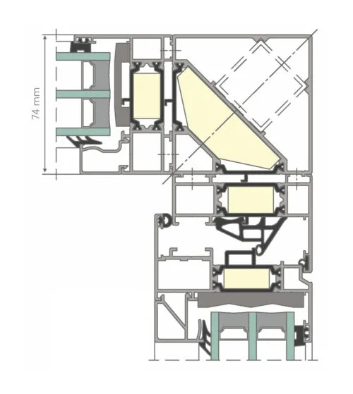 | Window construction depth | Frame profile | 74 mm |