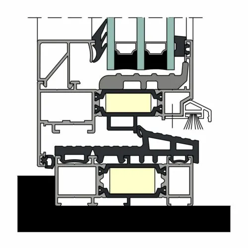 The thermal insulators used in the system (made of glass fibre-reinforced polyamide) and the space between them is additionally filled with polyurethane foam. The system makes it possible to create large-size structures due to the use of reinforced profiles on the outside as well as on the inside.
