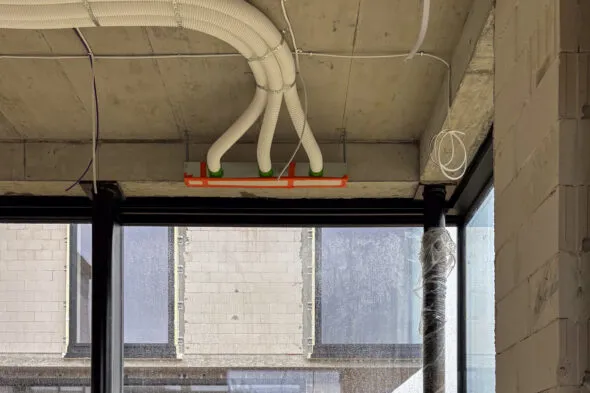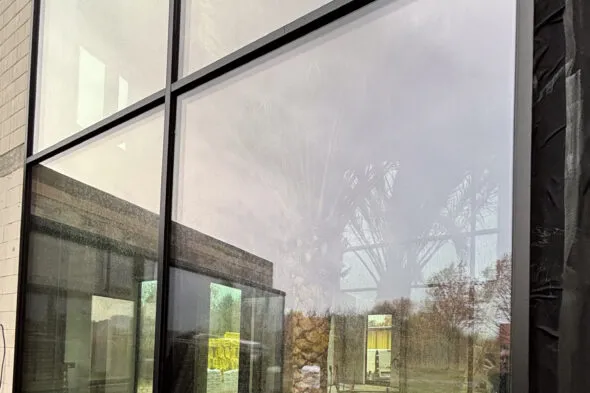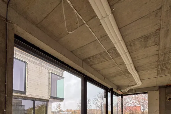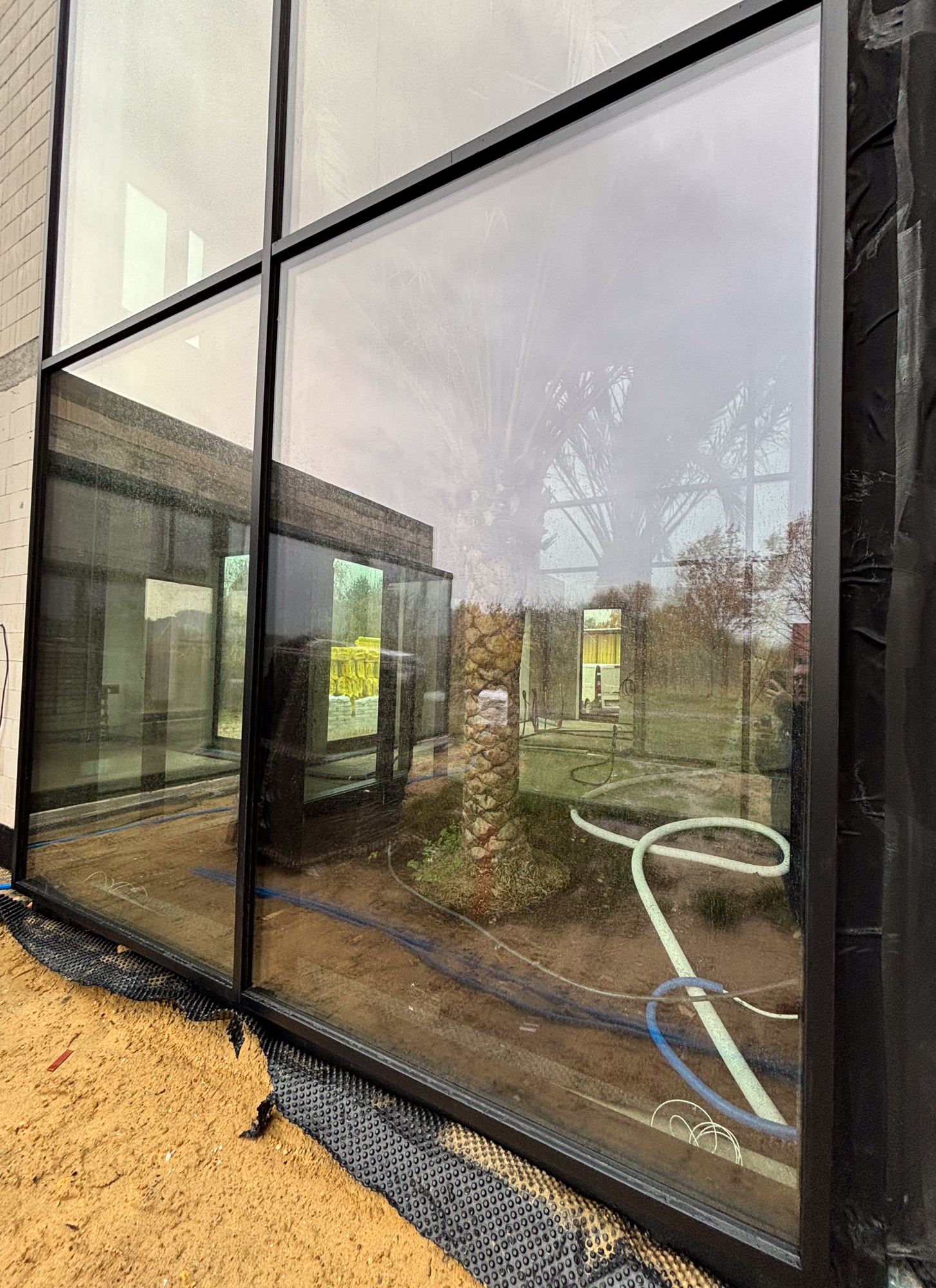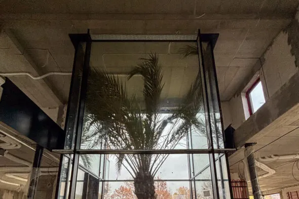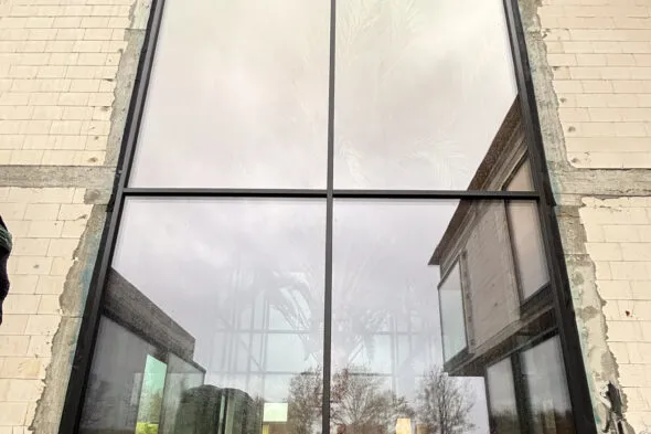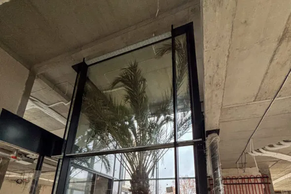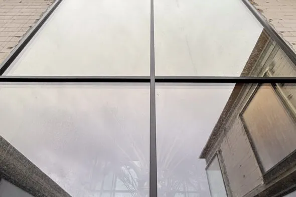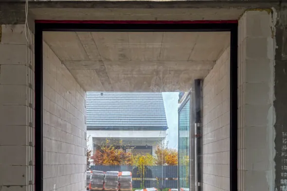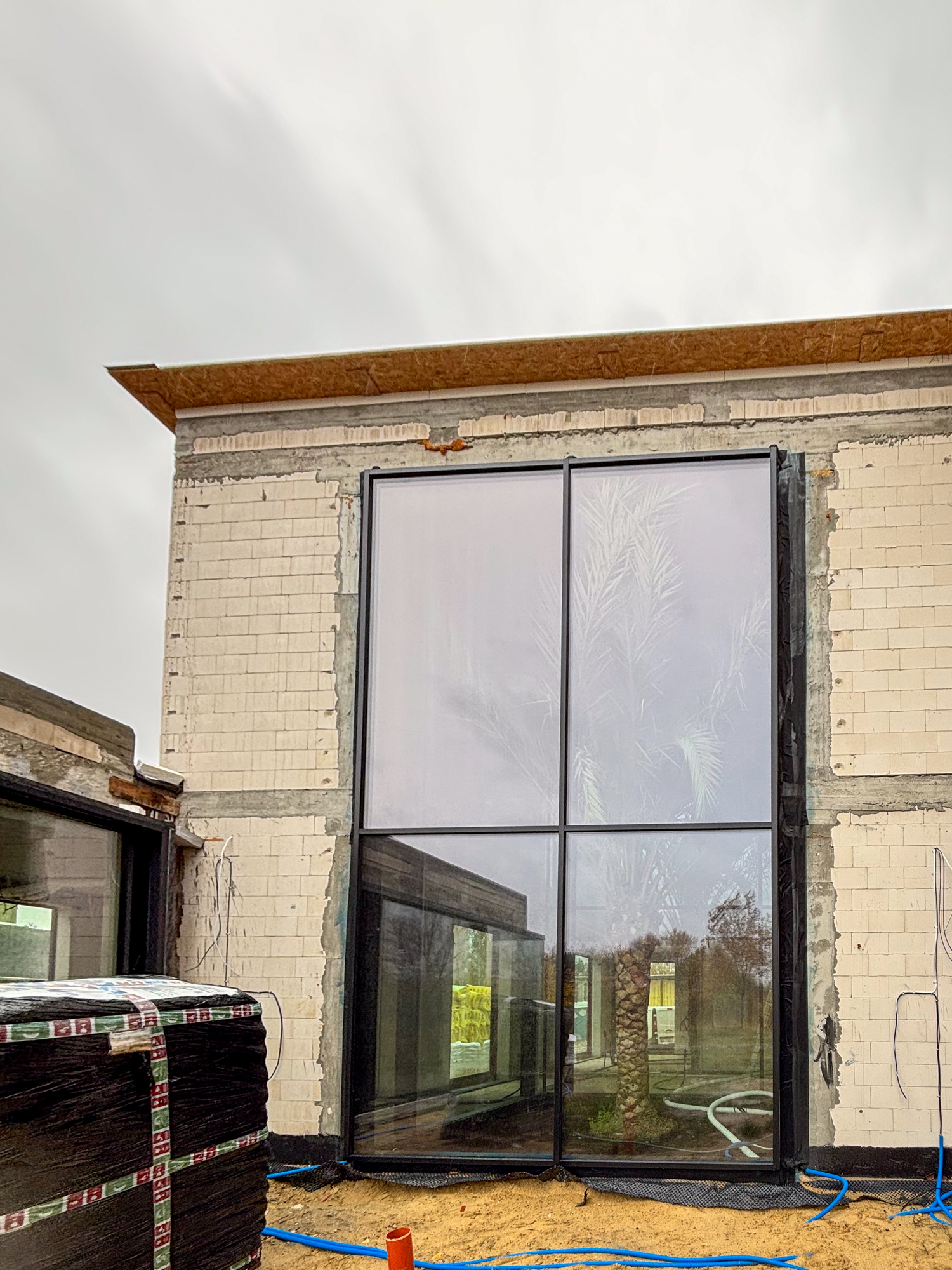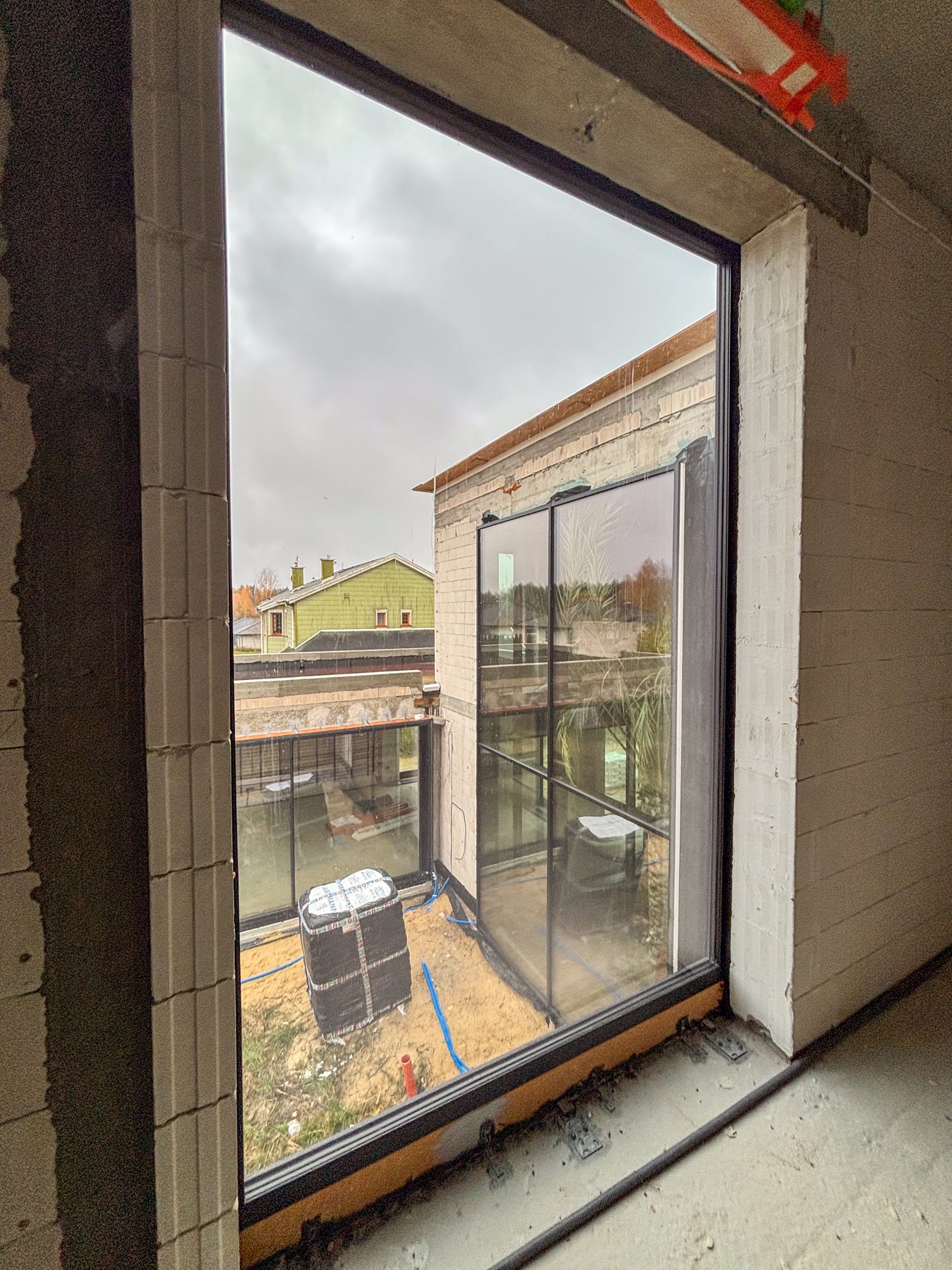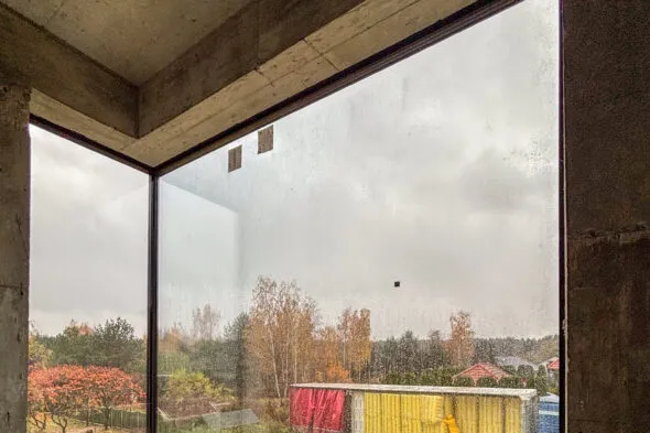 Wyjątkowa fasada aluminiowa o wysokości 7 metrów oraz efektowne przeszklenia Glass Corner tworzą w tej realizacji otwartą, jasną strefę dzienną z nietuzinkową, egzotyczną rośliną w centrum – kilkumetrowa palma otrzymuje tu idealne warunki wzrostu przez cały rok. Zastosowaliśmy system Yawal FA 50 N, okna i przeszklenia MoreView klasy S oraz konstrukcje TM 77 N, całość utrzymana w głębokim macie RAL 9011 struktura.