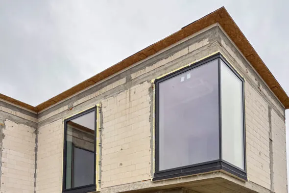 Przeszklona fasada aluminiowa Yawal FA 50 N z przeszkleniami Glass Corner i oknami MoreView